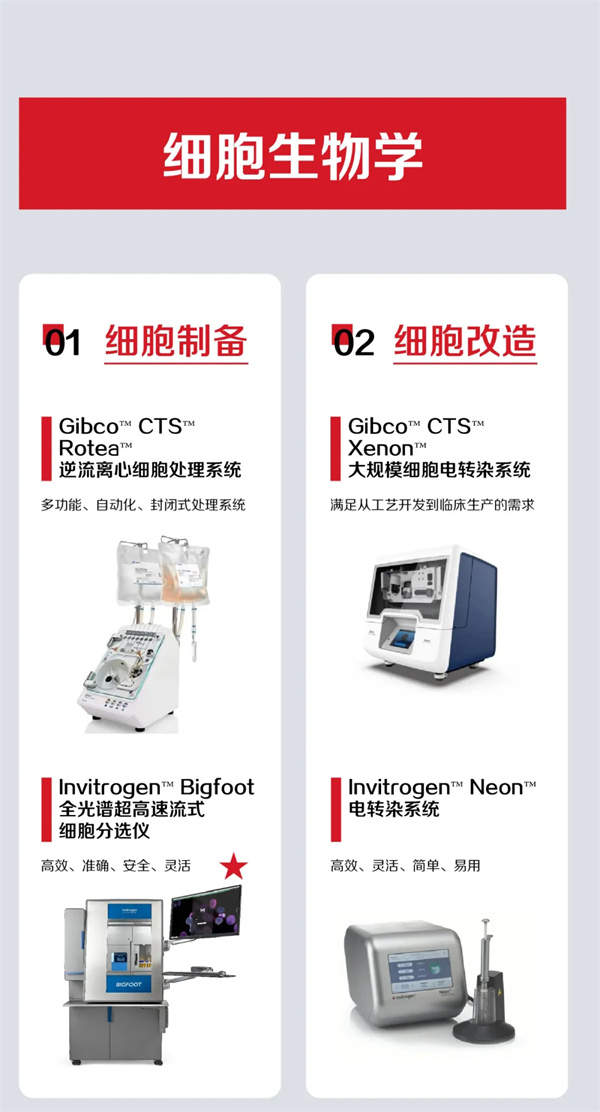 賽默飛旗下的Invitrogen、 Gibco、Thermo Scientific、Applied Biosystems子品牌可提供一系列高性能、高配置、高通量的科學儀器設備,為高校、科研院所、政府機構、醫院以及生物制藥企業提供全方位、全流程、全領域的完整解決方案。